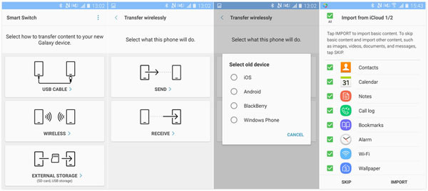 第 2 步:在 Samsung 手机上的 Smart Switch 上,选择“无线”,然后选择“接收”。然后,选择“ iOS ”选项。